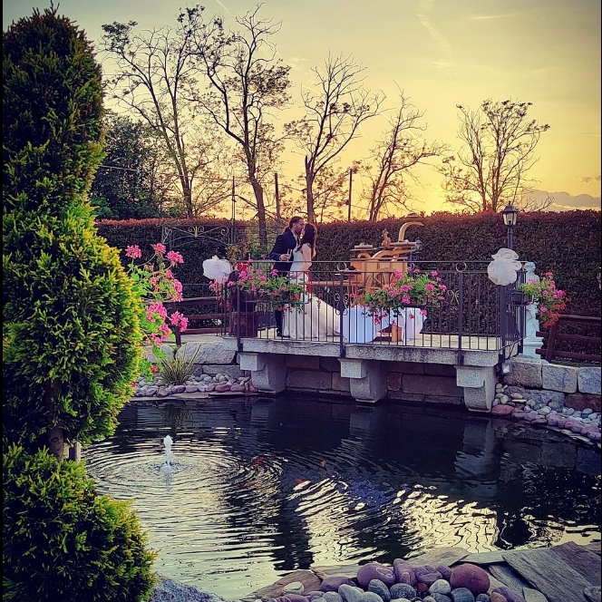 Lo splendido giardino con il laghetto, incornicerà alcuni momenti  più importanti del vostro giorno speciale, come ad esempio, il taglio della torta.